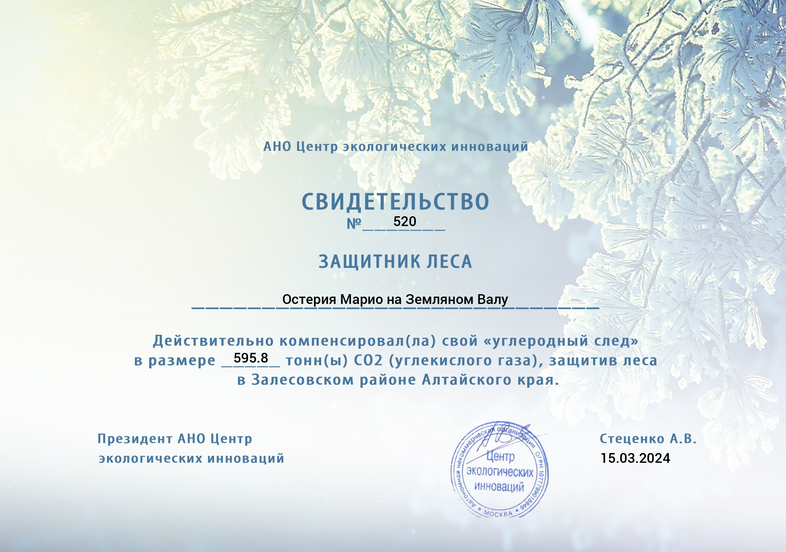 Остерия Марио на Земляном Валу погасил(а) углеродный след